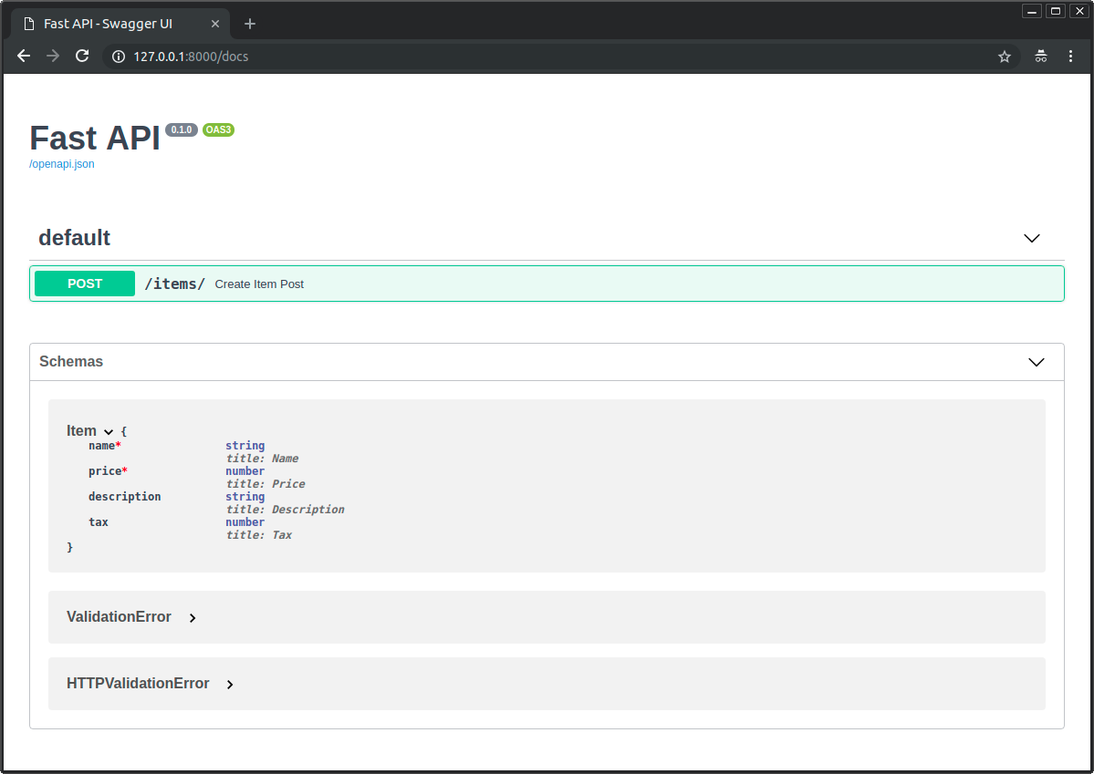 ...as description and tax are optional (with a default value of None), this JSON "object" would also be valid: